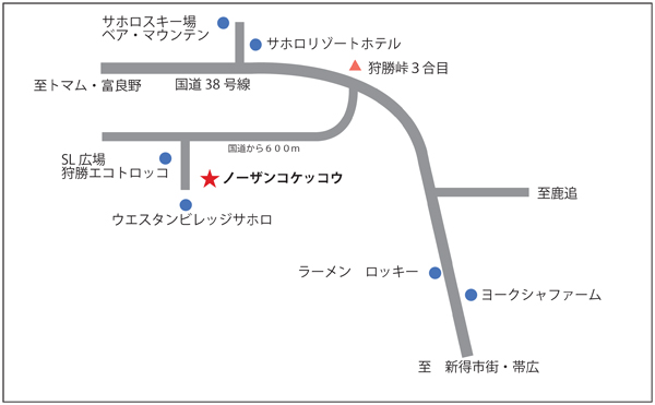 国道38号線狩勝峠3合目から600m左側です。